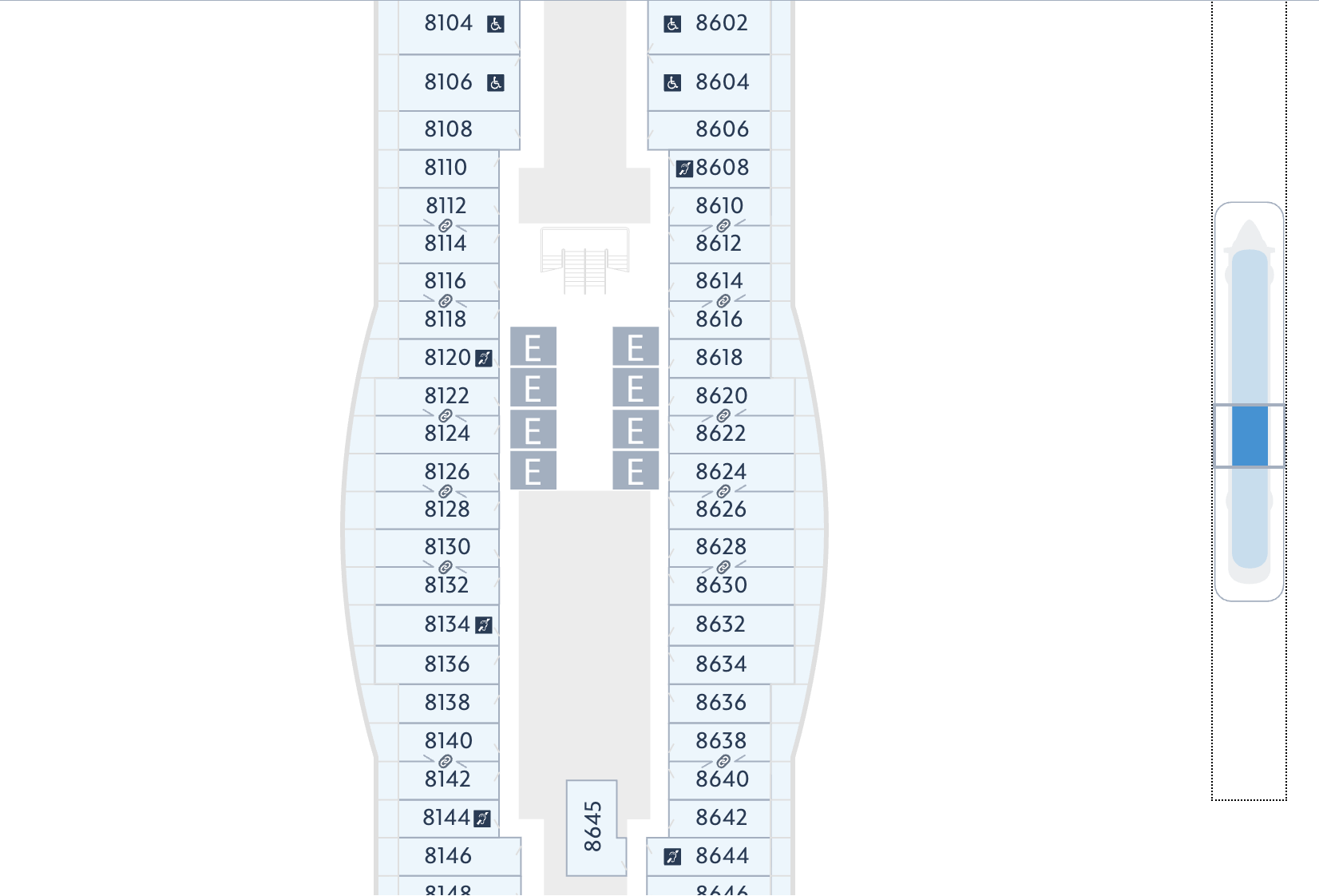 Here’s our room (8128) on the Deck Plans so you can see what the “bump out” means. We loved it!