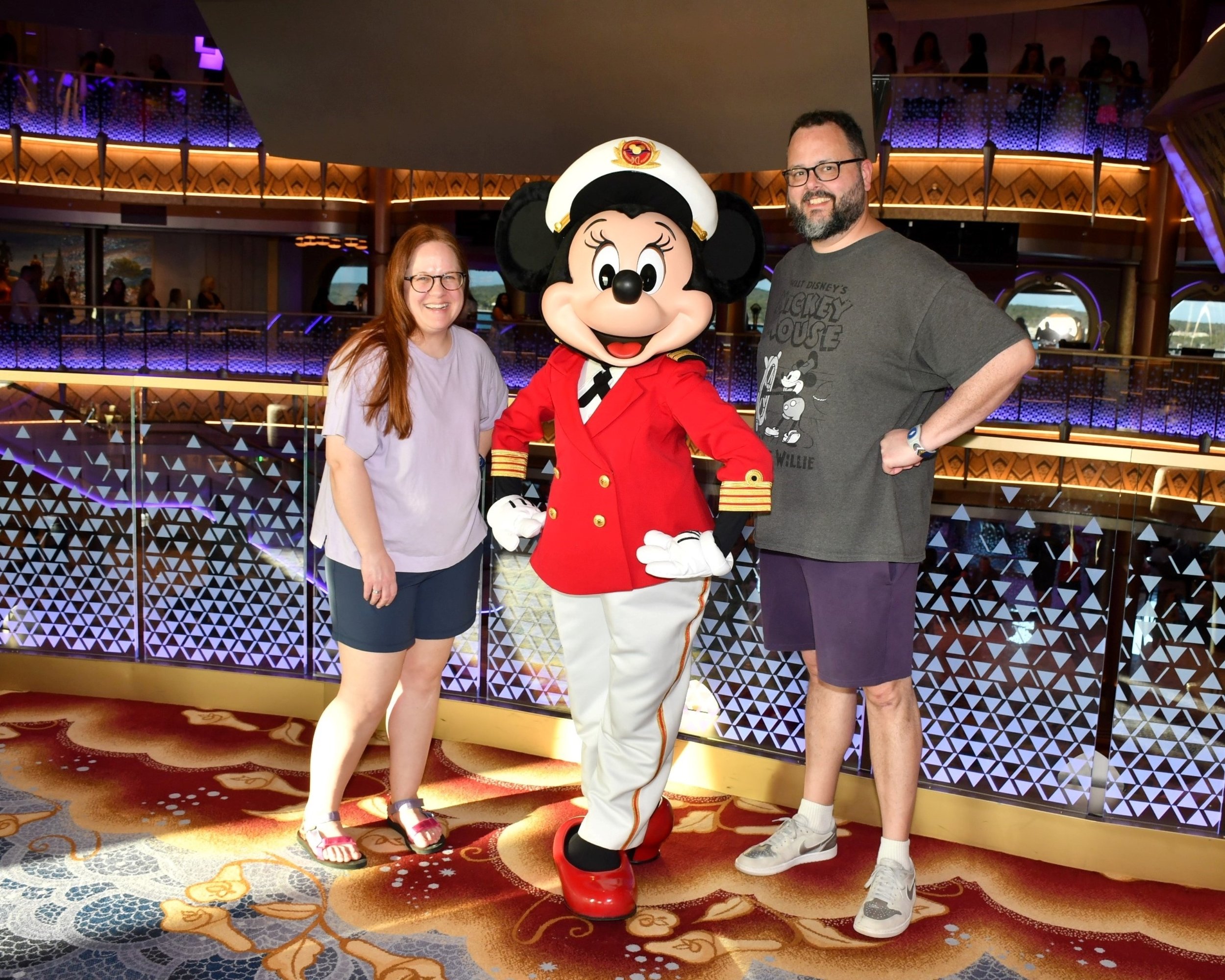 Mitch and I went down to the Royal Gathering where you can meet with multiple Princesses in a row. Very efficient without feeling rushed and you can sign up for this for FREE on your Online Check in day at 30 days prior to sailing. If Princesses are top priority for you I would highly recommend signing up right at midnight on that 30 day mark. This does fill up quickly. If you don’t get it, or aren’t a die hard Princess fan, there are plenty of opportunities to meet with characters around the ship at other times. Don’t stress it! We got to meet with Rapunzel, Tiana, Belle and Moana.